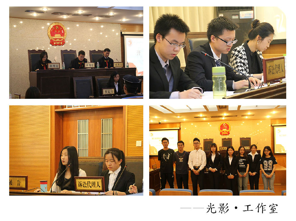 首先进行了法庭调查和证人出庭的环节,双方辩护人都非常机警睿智,纷纷抓住对自己有利的证词作为自己的武器,但最后审判长提出了几个非常犀利的问题,双方辩护人及时调整,从容应对,较好地解决了问题。在法庭辩论阶段,原告代理人条理清晰、妙语连珠,更是将此次模拟法庭推入高潮。最后,在双方做完最后陈述之后,进入休庭合议环节。