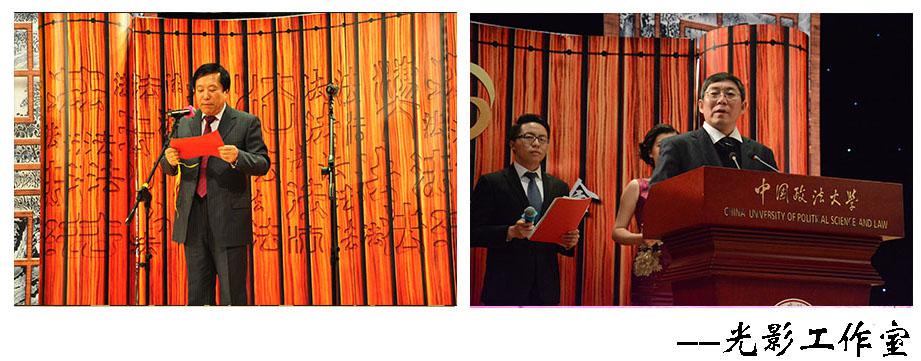 颁奖环节正式开始,清华大学获奖者李若愚、阮神裕、柯勇敏,浙江大学获奖者高迪、邬秋波,我校获奖者张焕然、肖强、严立等同学依次走上舞台与大家分享自己成功的喜悦与宝贵的经验。少年书生意气,容光焕发,从他们的言谈中不难发现支撑他们的除了自身的严于律己,还有对法律崇高的使命感与责任感。值得一提的是,本届颁奖典礼主题匠心独具,以舟为意向,喻法为舟,在“转蓬辞故,扬帆起航”、“溯洄从之,道阻且长”、“坦途巍巍,舟行岿然”、“欲渡巨川,寄以舟航” 四段视频中展示了我国在建国初期、文革时期、改革开放、中共十五大以来的法治发展情况,讲述了中国法治建设、法学教育的发展历程及以江平老师为代表的法学前辈的奋斗心路,描绘了江奖十五年来的发展状况。