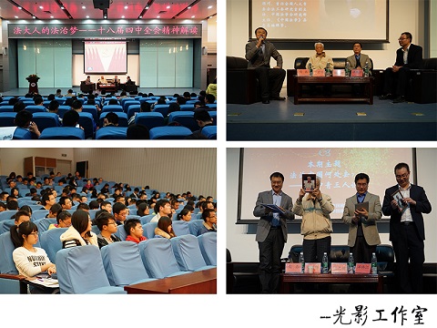 “法大人的法治梦——十八届四中全会精神解读”专题论坛旨在通过邀请法理学、宪法学、诉讼法学、民商法学等相关领域权威专家学者,第一时间对十八届四中全会《中共中央关于全面推进依法治国若干重大问题的决定》进行解读,畅谈“依法治国”,建言法治中国建设。同时,引导青年学生关注法治中国建设,在青年学生中营造学习四中全会精神的良好氛围,鼓励青年学生树立法治理想,形成法治思维,将法治中国的梦想播撒在青年学生的成长途中,为法治梦、中国梦贡献力量。