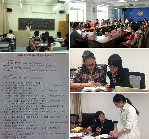 《民法总论》、《为权利而斗争》、《中国法律与中国社会》、《私法中的人》、《德国债法改革》,刘老师所推荐的书目囊括古今,涉及中外,所推之书无不为精品,不仅使学生们得以了解现代中国的法律和中国法律之历史,更使大家领略不同法系和法律制度背景下学者们的观点。借广泛涉及,以扩充学生之视野,训练其拥有灵活严谨的法学思维模式。至于学习成绩的进步,在这两种作用面前,倒显得微不足道了。刘智慧老师笑称:“你们不用平时特意选我的课,有读书会的交流,我上课的一些思路和思想基本都在里面了。”由此可见,刘老师通过这种潜移默化的影响,为同学们的民法学习创造了良好的条件,而第十二届江奖第一名获得者郑凯强师兄在回忆大学生涯对自己最有帮助的老师时也提到:“刘智慧老师办的读书会对我影响很大,我觉得是一种对我大学学习的监督,提醒我要读书、学习。”刘智慧老师就这样以自己的坚持付出,为同学们的法学学习提供了一个极好的平台,据1202班的同学们反映,他们都从读书会的活动中收获了有益的东西。在读书会的交流讨论过程中,大家不仅增广了见识和领略了不同的思维方式,促进了个人学习的进步,更在这项集体性的活动中增进了相互间的友谊,使班集体更加具有凝聚力。